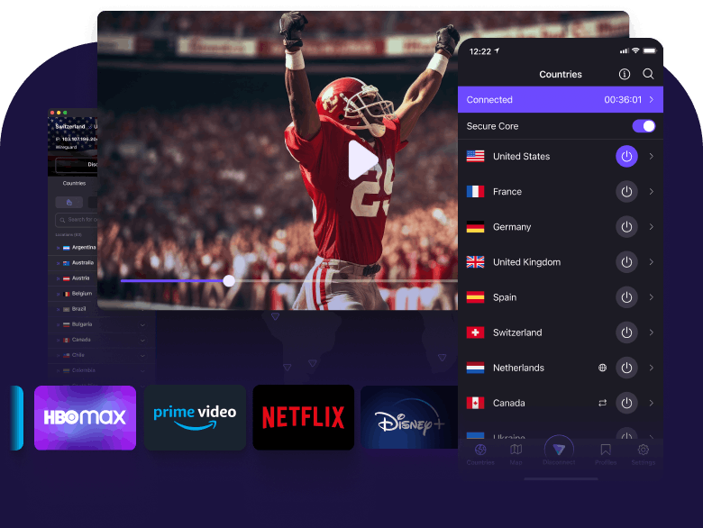 Proton VPN unblocks a wide selection of popular online media services, allowing you to access your favorite streaming content from anywhere in the world as if you were at home.