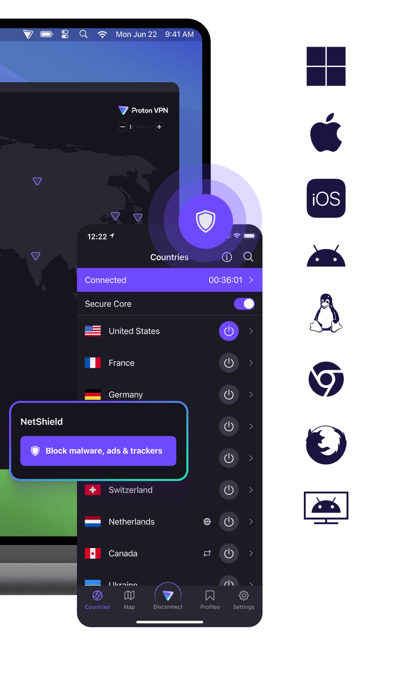 Proton VPN is available on all your devices, including PCs, Macs, smartphones, and even routers.
